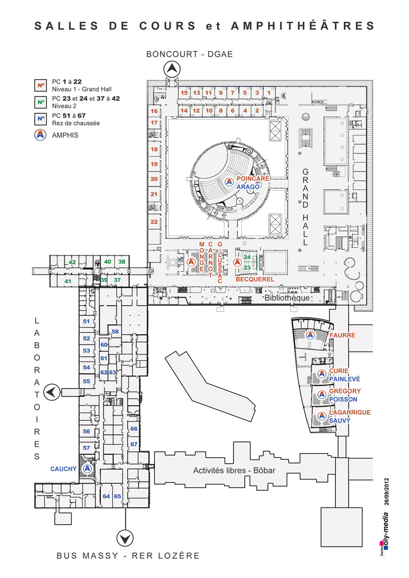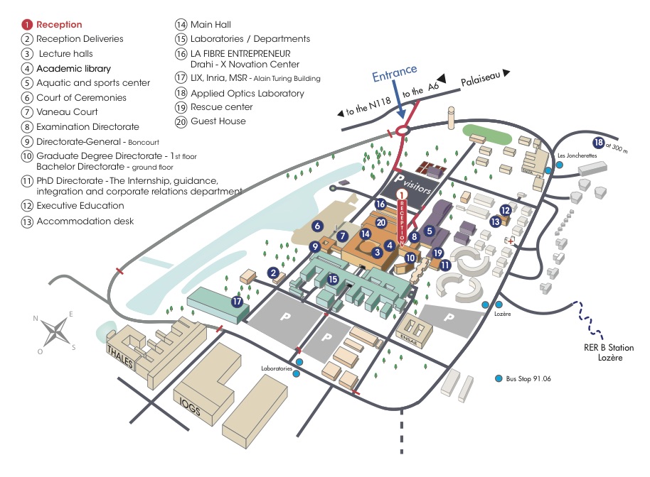 The workshop will take place in amphitheater Lagarrigue within the campus of Ecole polytechnique. The Ecole polytechnique is located in the south suburb of Paris. To get there, you may come by RER or by car.